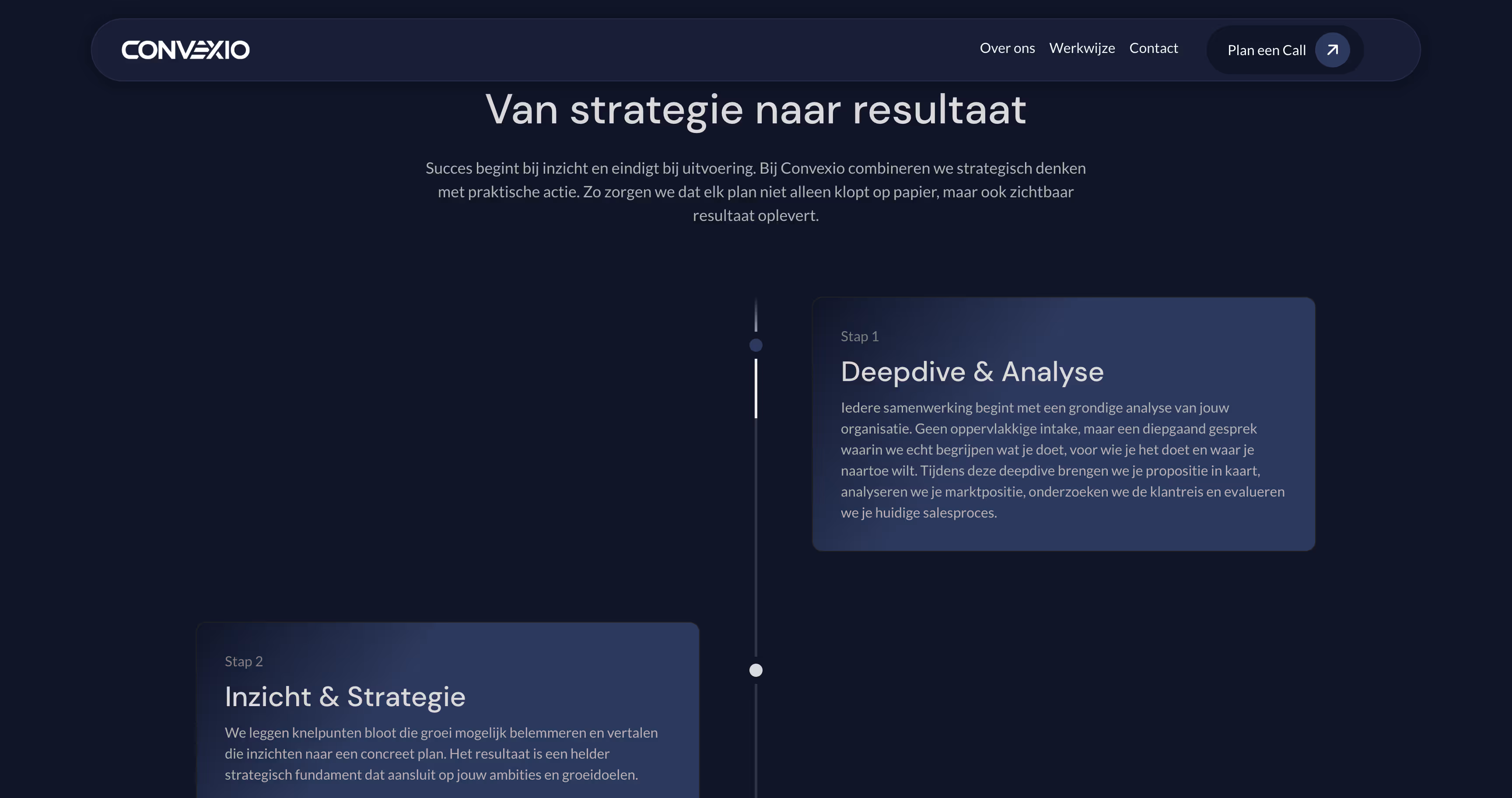 Onze werkwijze is helder en effectief: we vertalen jouw verhaal naar een website die past bij je merk en resultaat oplevert. Met Webflow bouwen we een snelle, flexibele site die met je meegroeit en klanten binnenhaalt.